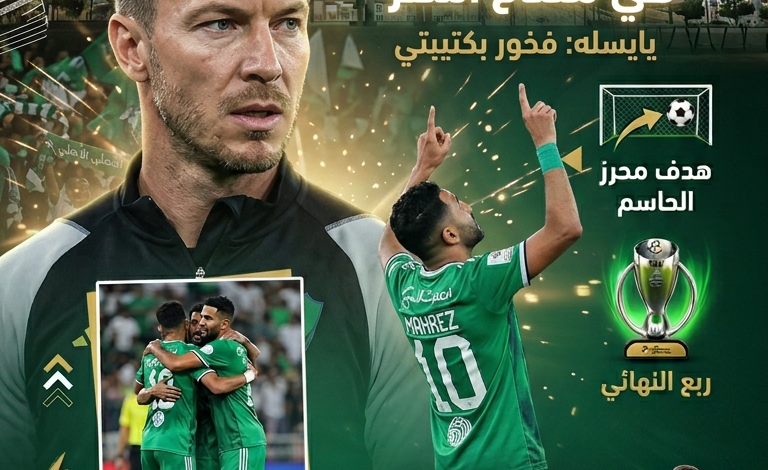 الساحر” الجزائري يؤكد: طموحنا استعادة اللقب القاري وإسعاد جماهير القلعةفي ليلة تجلت فيها خبرة النجوم الكبار، لم يكتفِ النجم الجزائري رياض محرز بقيادة فريقه الأهلي لتجاوز عقبة الدحيل القطري (1-0) والتأهل لربع نهائي دوري أبطال آسيا للنخبة، بل أرسل رسائل قوية ومؤثرة عقب اللقاء الذي احتضنه ملعب الإنماء، مؤكداً أن “الراقي” لم يأتِ للمشاركة فحسب، بل لكتابة فصل جديد من الأمجاد القارية.رسالة محرز: عهد بالوفاء وطموح بلا حدودبكلمات واثقة، خطف محرز الأضواء عقب صافرة النهاية، حيث صرح قائلاً: “نحن هنا لنضع الأهلي في مكانته الطبيعية.. سنبقى لنصنع التاريخ مع هذا الكيان”. وأضاف محرز أن الرغبة في استعادة اللقب الآسيوي هي المحرك الأساسي للفريق في هذه المرحلة، مشدداً على أن الرابط القوي الذي يجمعه بجماهير الأهلي يمنحه دافعاً مضاعفاً لتقديم كل ما يملك فوق أرضية الميدان.القائد والملهم: أكثر من مجرد هدفتحليلياً، لم يكن دور محرز مقتصرًا على تسجيل هدف الفوز من ركلة حرة عالمية، بل ظهر كقائد حقيقي فوق الميدان. خبرة “رياض” في الملاعب الأوروبية وتمرسه في المباريات الكبرى منحت الأهلي الثقة والهدوء التكتيكي، خاصة في اللحظات التي حاول فيها الدحيل العودة في النتيجة. محرز كان بمثابة “البوصلة” التي وجهت هجمات الأهلي، والمحرك الذي منح زملاءه الثقة في قدرتهم على تجاوز الصعاب والغيابات.مسار البطولة: الأهلي يكتسب “شخصية البطل”هذا الانتصار والتصريحات التي تلته تعكس نضجاً كبيراً في منظومة يايسله؛ فالأهلي الآن لا يلعب كرة قدم جميلة فحسب، بل يمتلك الشخصية والخبرة اللازمة لإدارة مباريات خروج المغلوب. ارتباط محرز العاطفي بالجماهير ورغبته الصادقة في إسعادهم، حولت الطموح القاري من مجرد “هدف” إلى “قضية” يقاتل من أجلها جميع اللاعبين.الخاتمة: الخطوة الأولى نحو العرش الآسيوييغادر الأهلي ملعب الإنماء وهو يحمل بطاقة التأهل، والأهم من ذلك، يحمل إيماناً كاملاً بقدرته على الذهاب إلى أبعد نقطة. بوجود محرز كقائد ملهم ومجموعة مقاتلة خلفه، يواصل الأهلي مشواره نحو اللقب القاري بخطوات ثابتة وثقة تعانق السماء، في انتظار التحدي القادم في ربع النهائي.